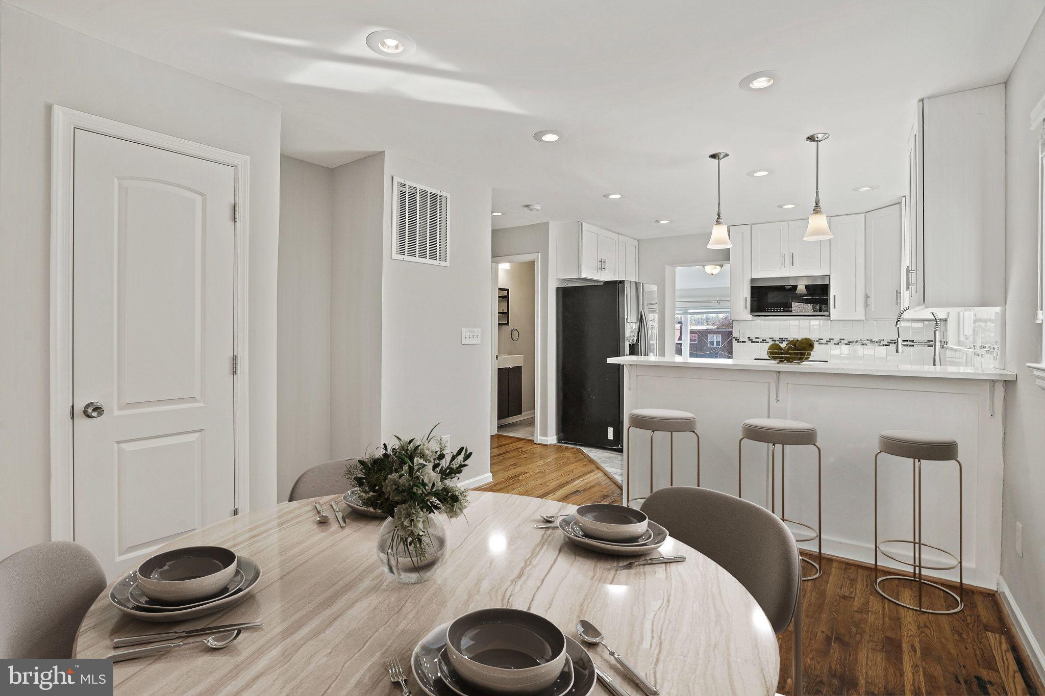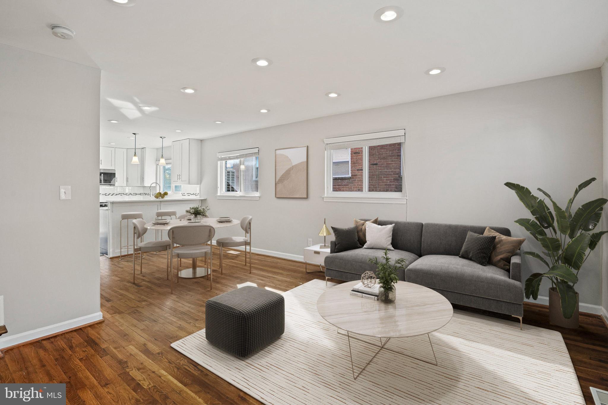 Beautiful renovated 3 bedroom/2.5 bath house with large, landscaped back yard and 2-car parking! This one has the character and the modern touch! Natural light floods in the main level with windows on 3 exposures! Open living/dining room is perfect for entertaining. Renovated kitchen with loads of cabinet storage, counter space, and breakfast bar! Powder room along with extra additional sun room with built-in cabinets overlooking beautiful back yard and patio round out the main level. The upper level features 3 spacious bedrooms and renovated full bath! Newly renovated basement level features open family room, 2nd full renovated bathroom, and built-in Murphy Bed for added guest space! Hardwood floors throughout, solar panels on roof (no more hefty electric bills!), AMAZING landscaped back patio and fenced-in yard, plus 2-car parking! Close proximity to METRO and all the shops/restaurants in Downtown Takoma!