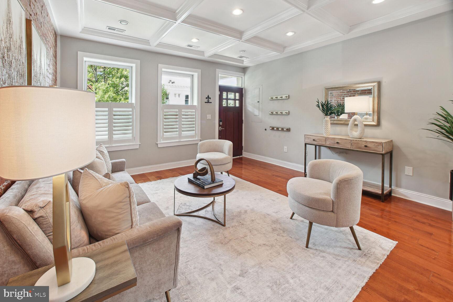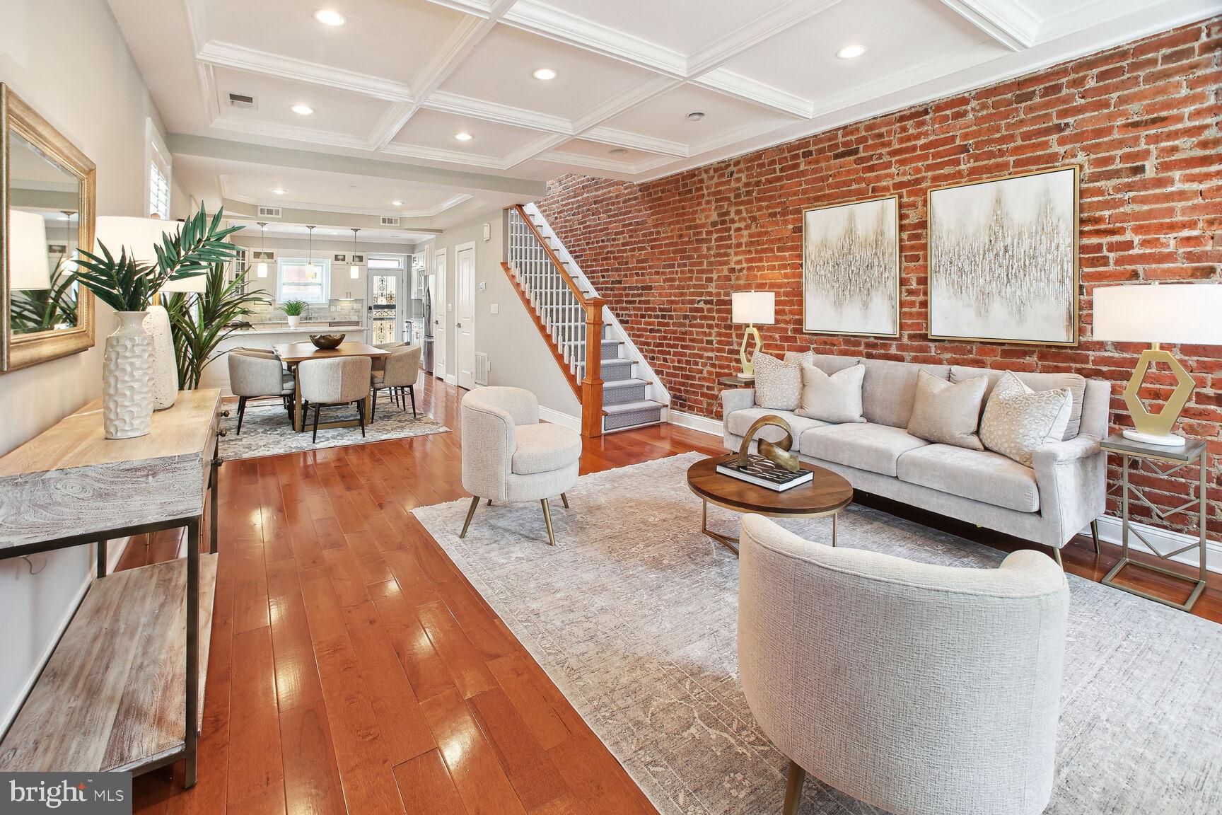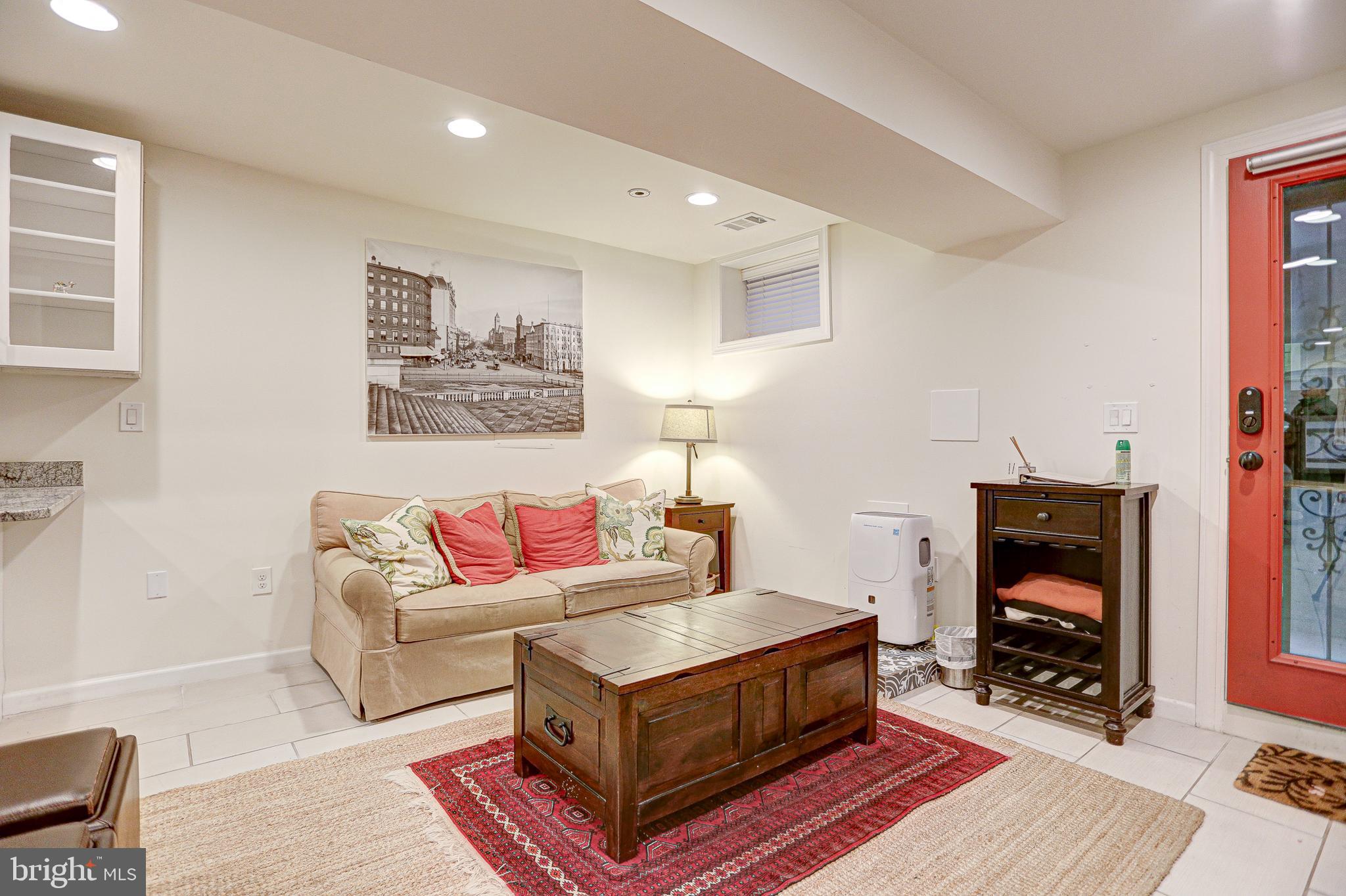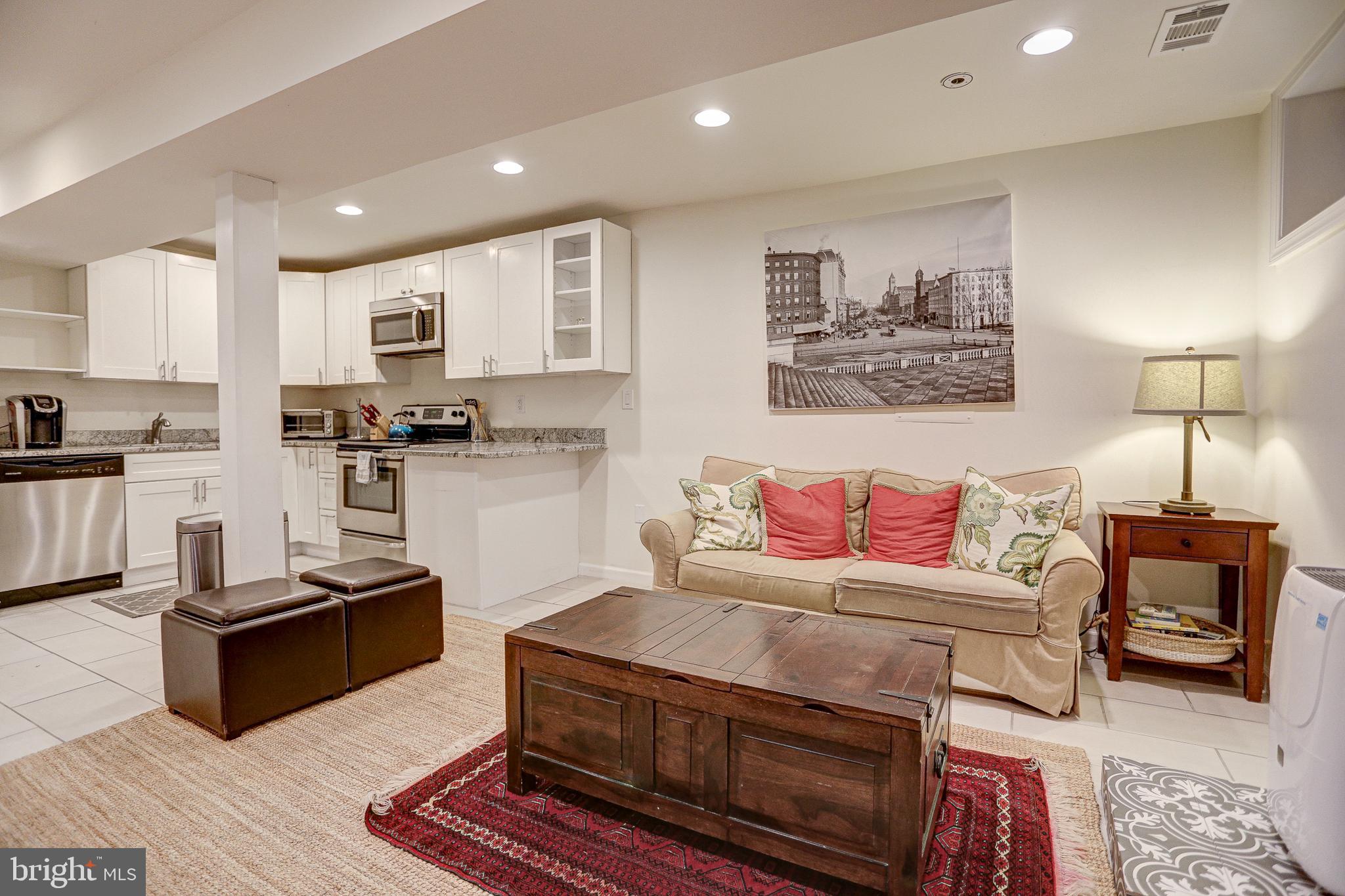 Renovated 4 bedroom, 3.5 bath end-unit rowhouse with off-street parking and income-producing basement! Main house boasts 3 REAL bedrooms and 2.5 baths, plus a basement 1 bed/1 bath apartment with it's own Certificate of Occupancy...you can rent it out with a lease, use for Air Bnb income, or easily reattach the connecting stairs for one huge residence! Enter the house from the inviting front porch and take in the expansive open layout on the main level, flooded by natural light from three sides and 6 windows! You'll be wowed by the character and details including walls of exposed brick and STUNNING coffered ceilings! If you like entertaining, you'll be impressed by the dining space that leads to the expansive open kitchen with stainless steel appliances, gas range and wine cooler. A HUGE island with space for stools highlights the impressive chef's kitchen...you'll be hard-pressed to find this much cabinet space, counter space and pantry in Capitol Hill! Top floor has 3 large bedrooms, including a primary suite with gorgeous primary bathroom and dual sinks! Basement has been completely renovated, dug out with new underpinning for EXTRA ceiling height, french drain system and 2 sump pumps with front and back entrances. Full kitchen, living area, full bath and separate bedroom. Owners used it for AirBnB and made over 36,000 in 2022, but can easily be re-connected to the main house. Basement furniture can convey at no-charge if desired to be fully ready to go! Off-street parking in the back as well as a cozy patio area for outdoor seating. Amazing location in Capitol Hill with tree-lined streets, access to parks, restaurants/bars in both Eastern Market and H St. areas!
