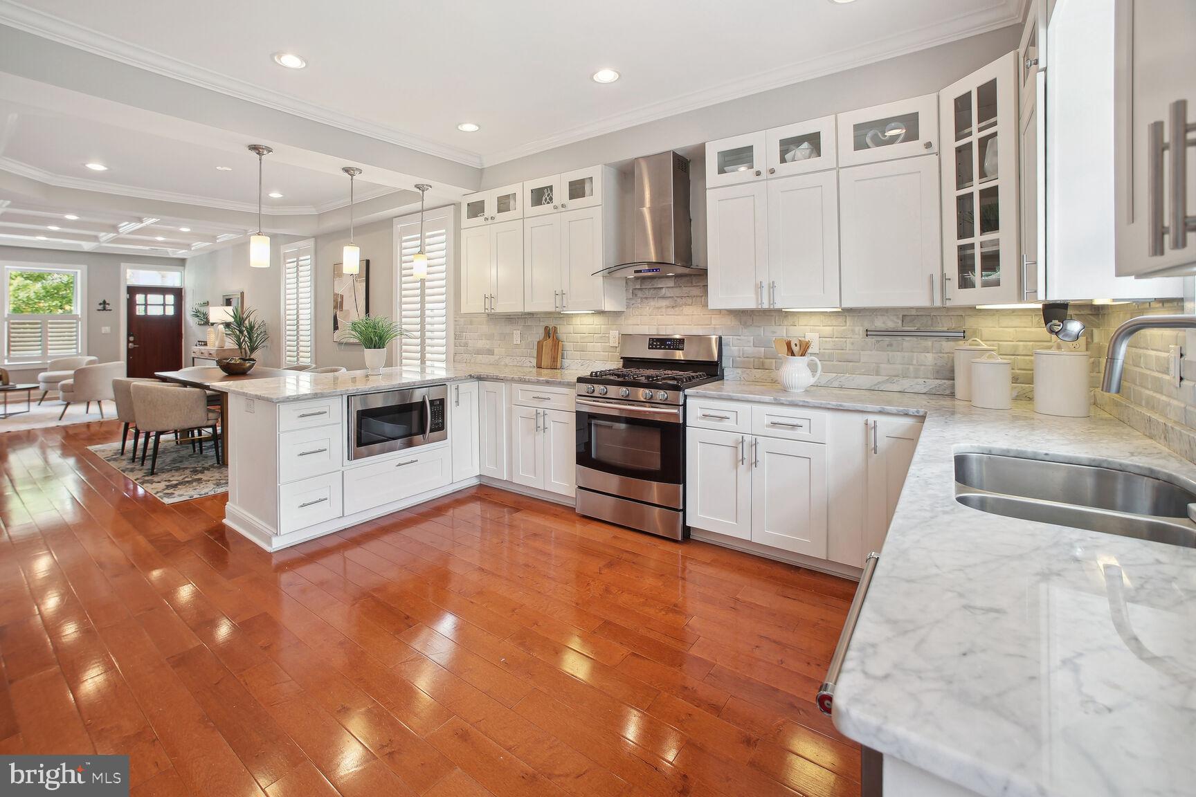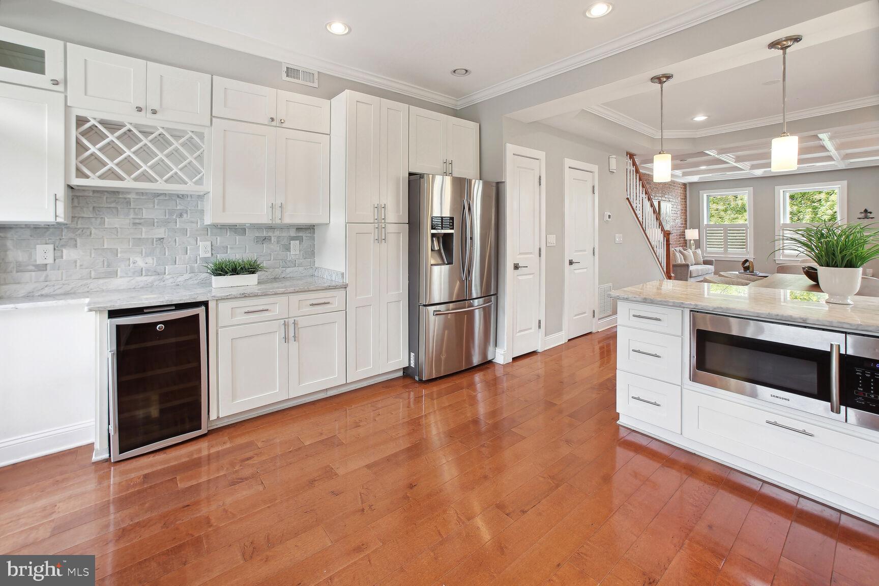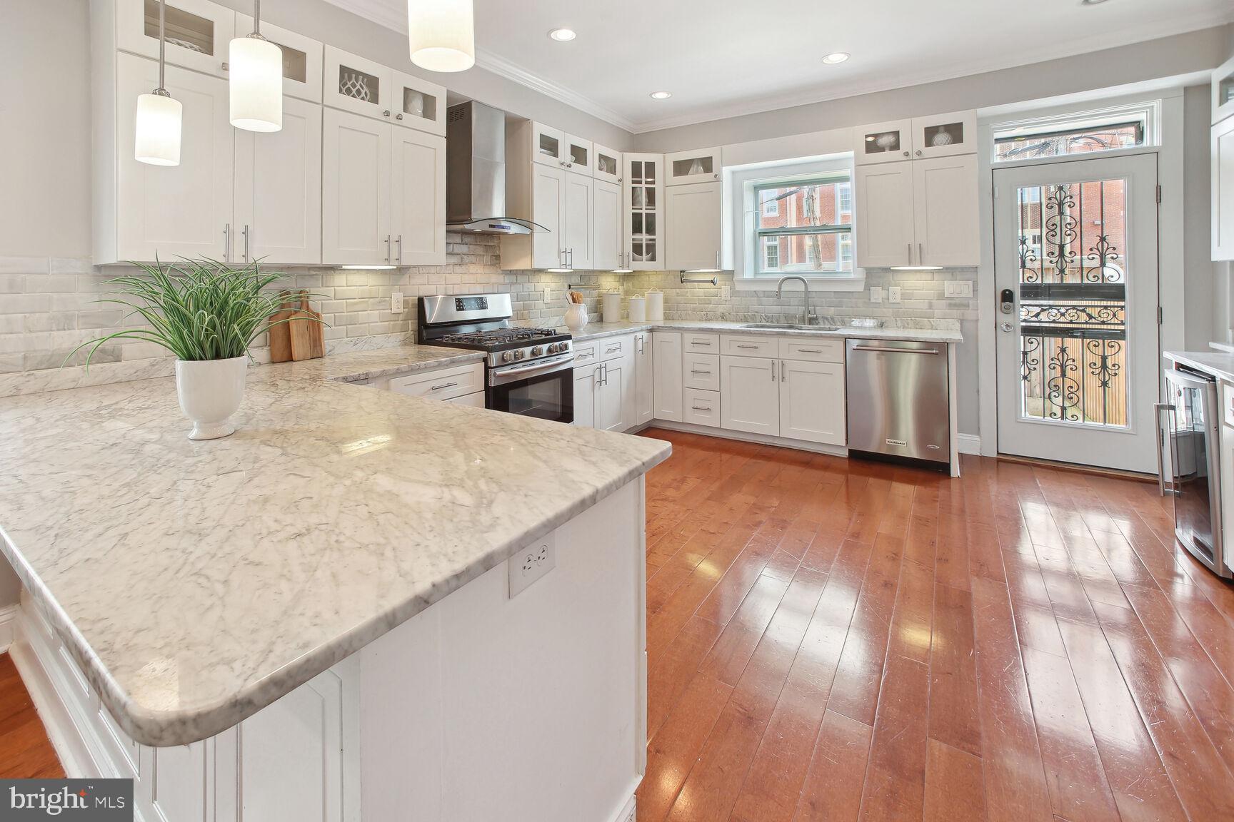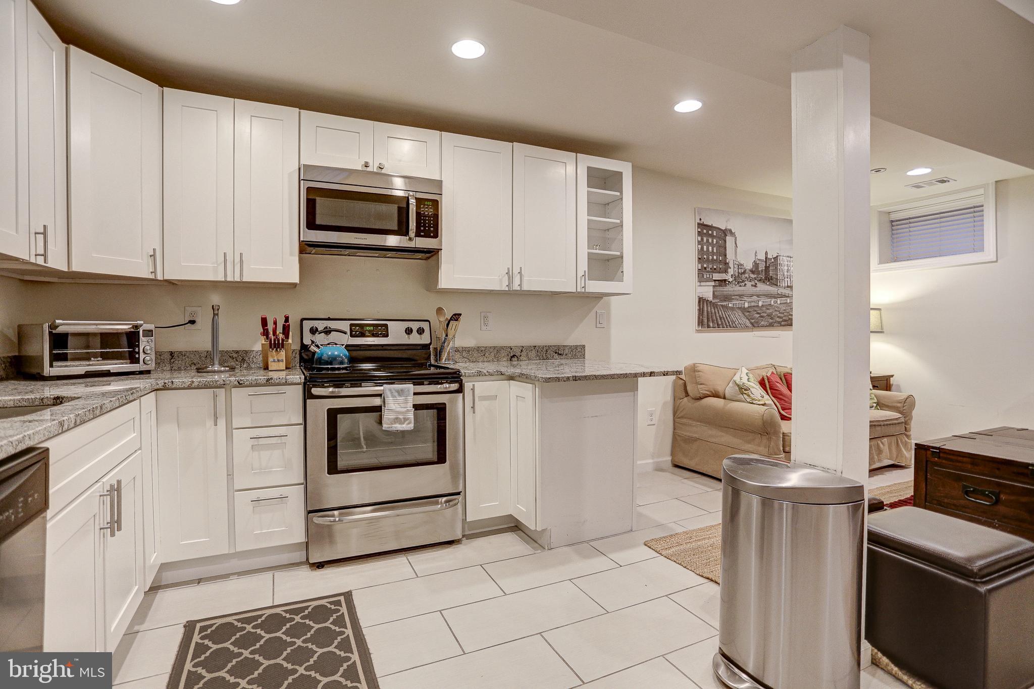 Renovated 4 bedroom, 3.5 bath end-unit rowhouse with off-street parking and income-producing basement! Main house boasts 3 REAL bedrooms and 2.5 baths, plus a basement 1 bed/1 bath apartment with it's own Certificate of Occupancy...you can rent it out with a lease, use for Air Bnb income, or easily reattach the connecting stairs for one huge residence! Enter the house from the inviting front porch and take in the expansive open layout on the main level, flooded by natural light from three sides and 6 windows! You'll be wowed by the character and details including walls of exposed brick and STUNNING coffered ceilings! If you like entertaining, you'll be impressed by the dining space that leads to the expansive open kitchen with stainless steel appliances, gas range and wine cooler. A HUGE island with space for stools highlights the impressive chef's kitchen...you'll be hard-pressed to find this much cabinet space, counter space and pantry in Capitol Hill! Top floor has 3 large bedrooms, including a primary suite with gorgeous primary bathroom and dual sinks! Basement has been completely renovated, dug out with new underpinning for EXTRA ceiling height, french drain system and 2 sump pumps with front and back entrances. Full kitchen, living area, full bath and separate bedroom. Owners used it for AirBnB and made over 36,000 in 2022, but can easily be re-connected to the main house. Basement furniture can convey at no-charge if desired to be fully ready to go! Off-street parking in the back as well as a cozy patio area for outdoor seating. Amazing location in Capitol Hill with tree-lined streets, access to parks, restaurants/bars in both Eastern Market and H St. areas!