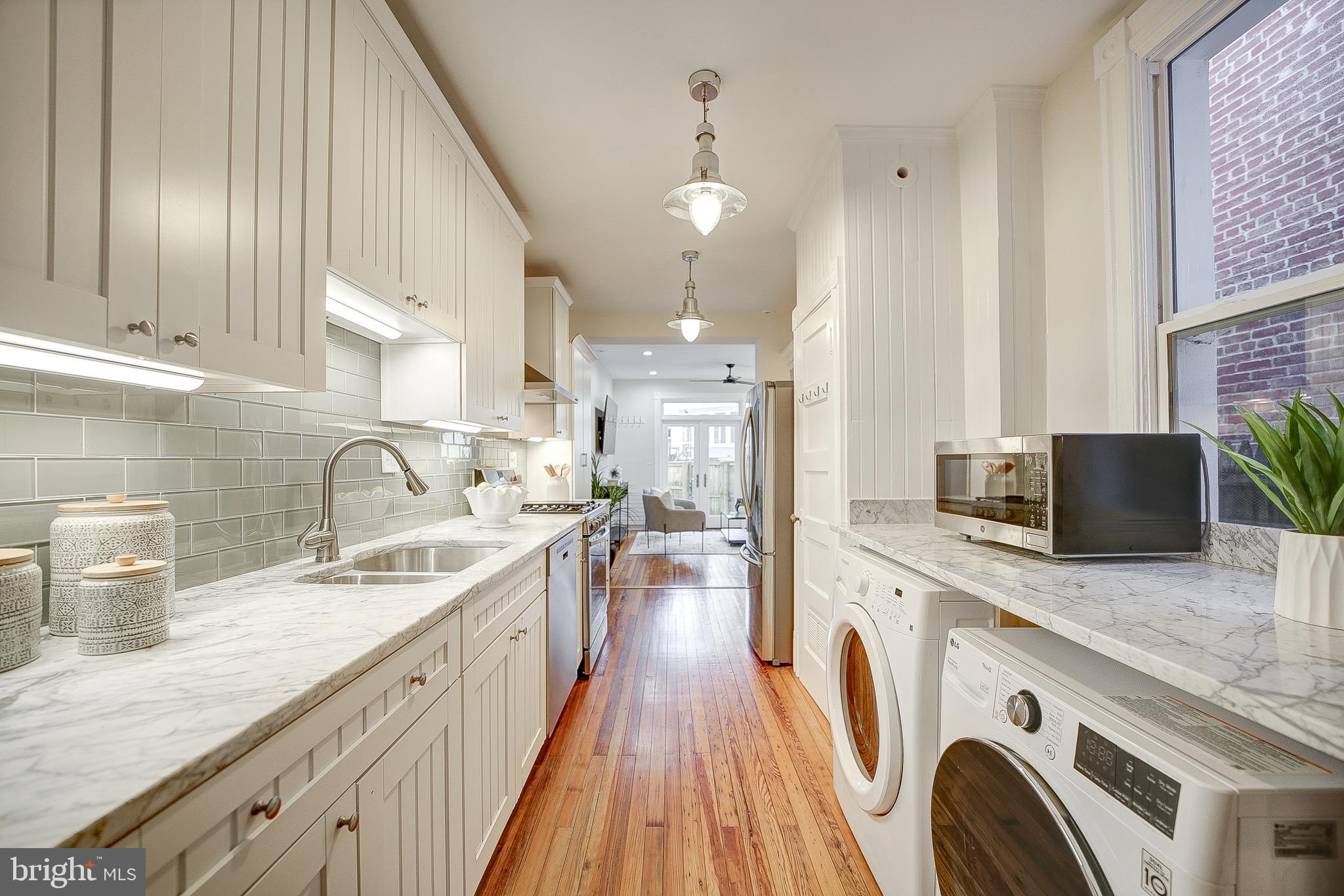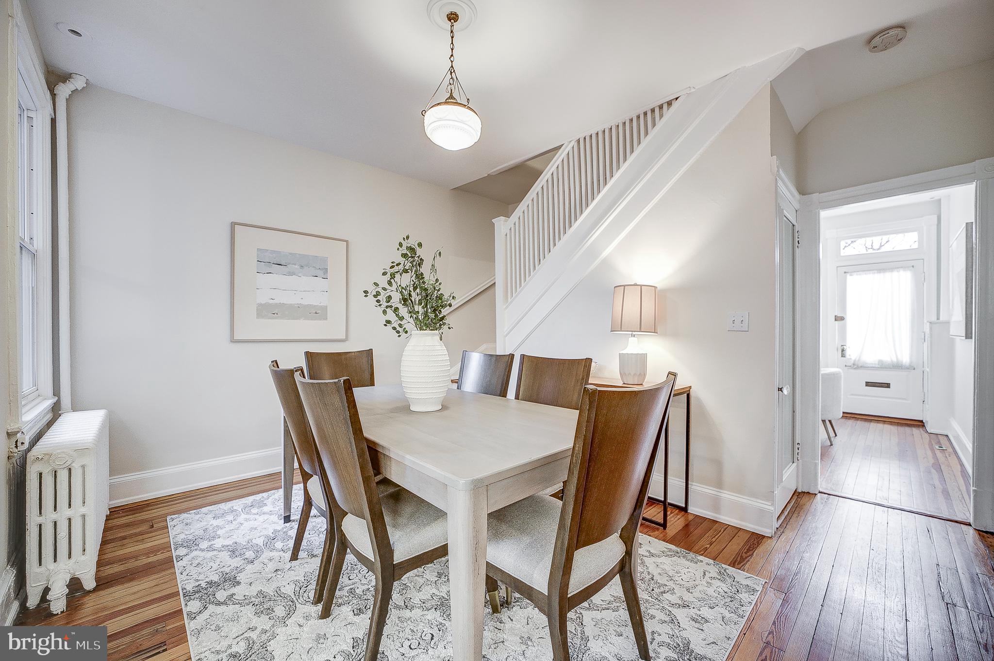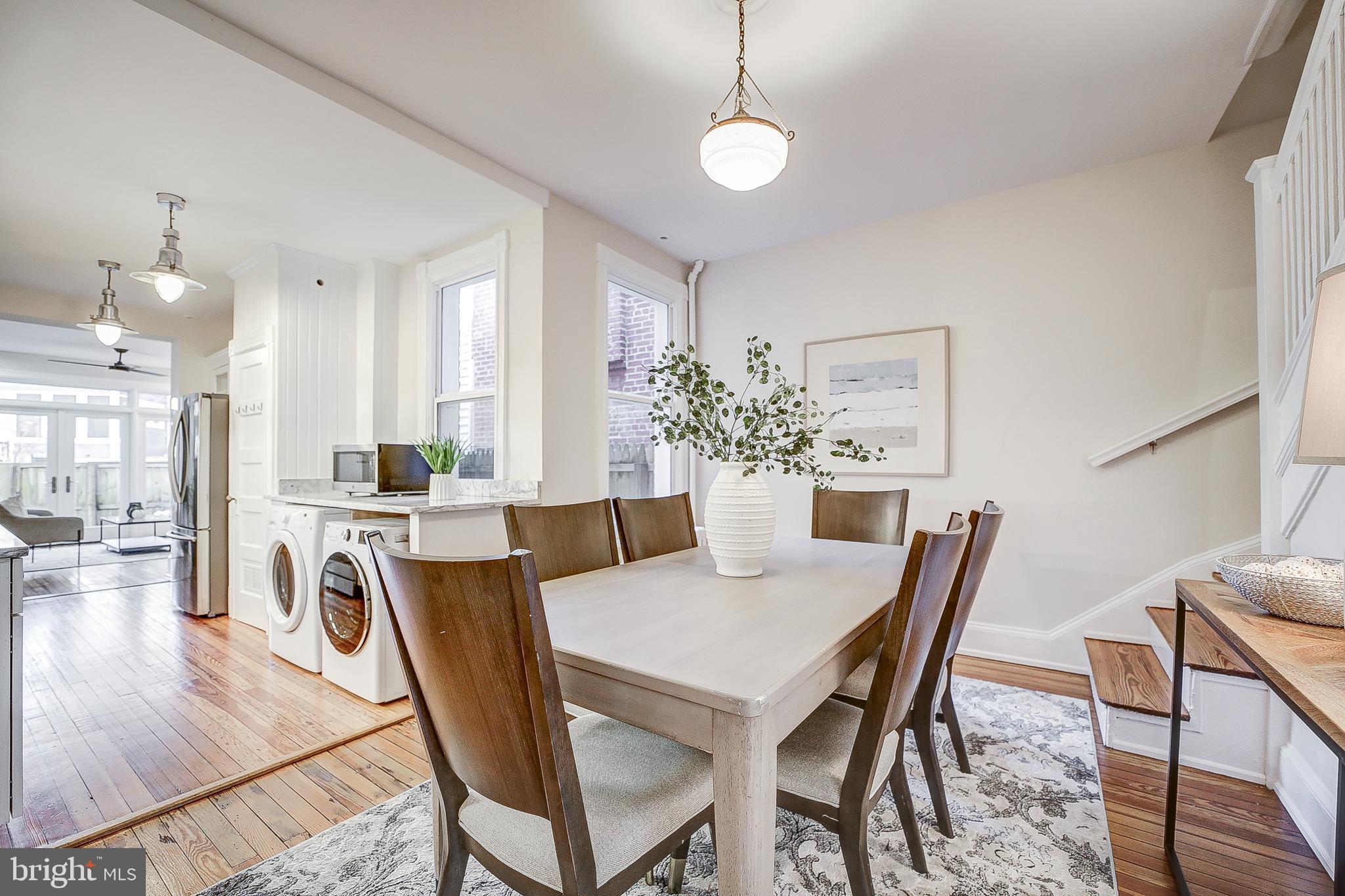 Gorgeous 3 bed, 2.5 bath rowhouse with loads of Capitol Hill character! Recent 17-foot two-level addition on the back of the house provides additional family room, half bath, pantry and amazing primary suite on top floor! Inviting fenced-in front yard and porch is perfect for enjoying the calm and relaxing benefits of a 1-way street with very little through traffic! Original front living room remains and can double as a formal parlor now that you have the new family room in back of the house. Separate dining room leads to renovated kitchen with stainless steel appliances and plenty of counter and cabinet space (don't forget the new pantry!). Out back is a large fenced-in back patio to enjoy your outdoor seating and grill! Top floor has Amazing primary suite with walk-in closet and new bathroom, 2 additional REAL bedrooms, and hall bath. Easy stroll to Metro just a block away and easy access to neighborhood favorites The Roost, Pretzel Bakery, Trusty's and fancy Safeway!